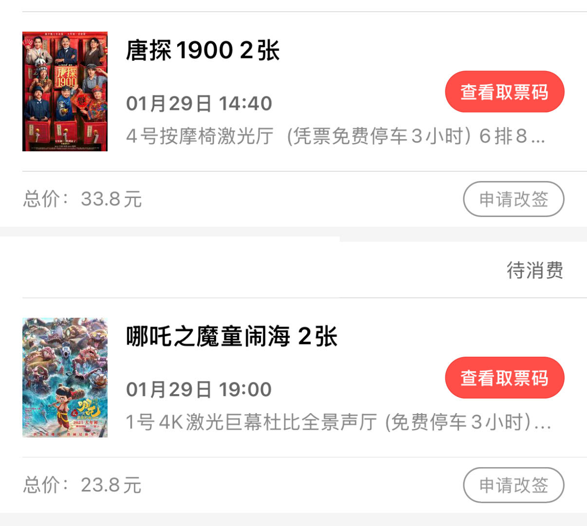 我买了25的哪吒,买一赠一的蛟龙,唐探等初三后看,不急着买票