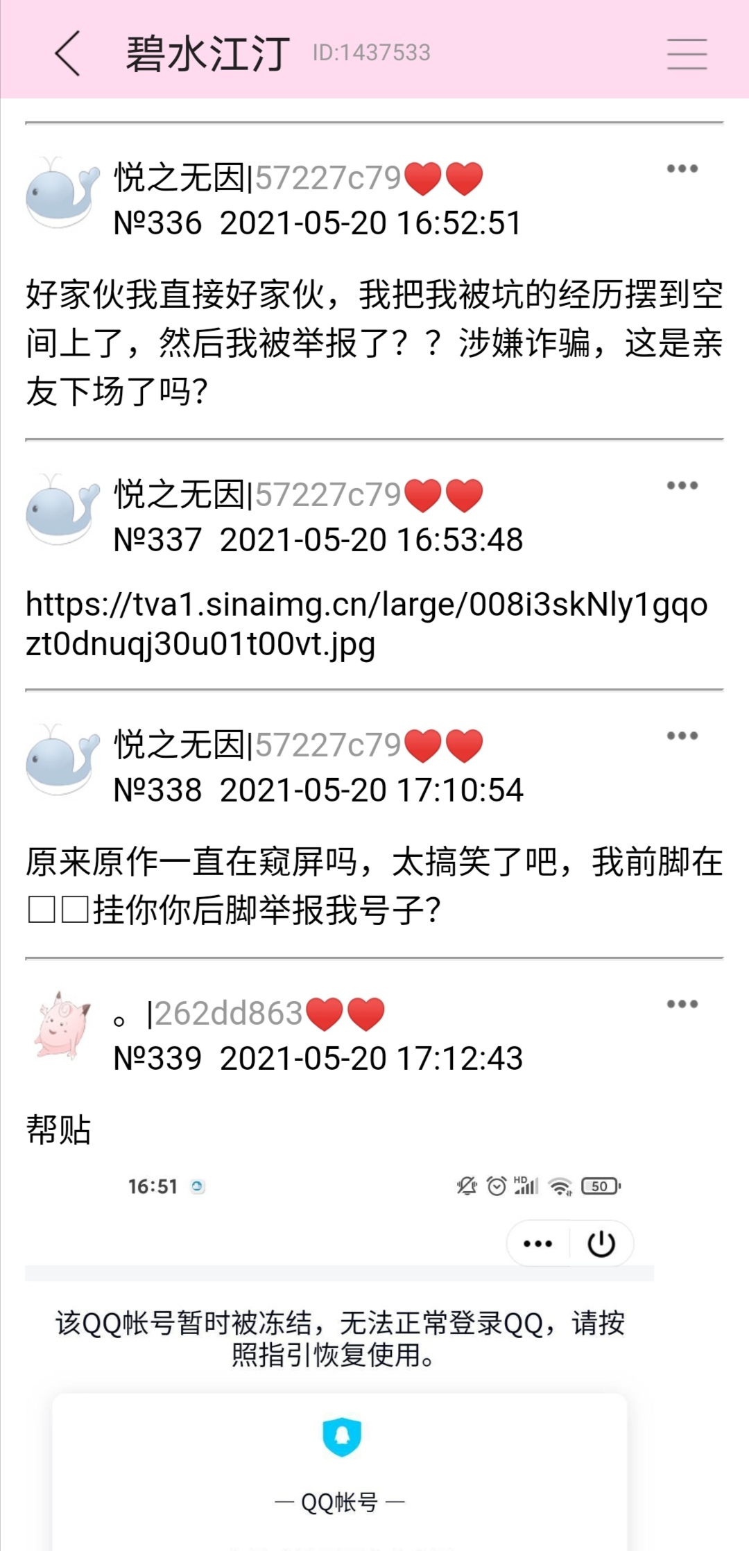 主题:太可怕了吧,刚才那个来吐槽作者要求五星评分才能发相册内容的楼主,企鹅号被举报冻结了 [137]